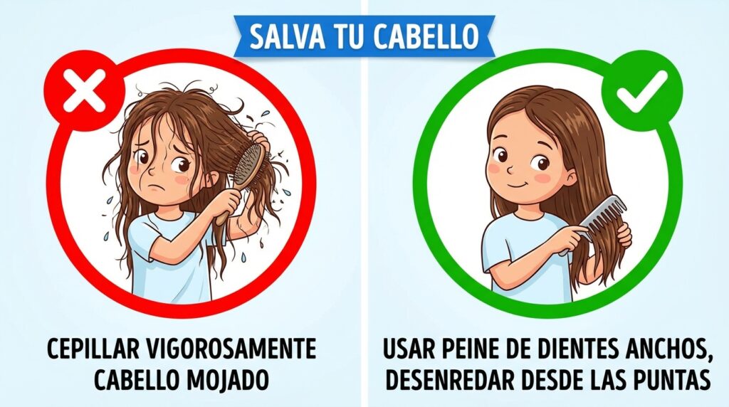- La Técnica Correcta: Empieza siempre por las puntas, luego medios y finalmente raíces. Sujeta el mechón con la otra mano para no tirar del folículo.